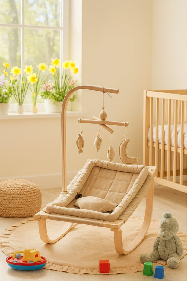 Bebeğinizin ilk aylarında konforlu, güvenli ve doğal bir uyku alanı sunan Sallanabilir Ahşap Ana Kucağı,...