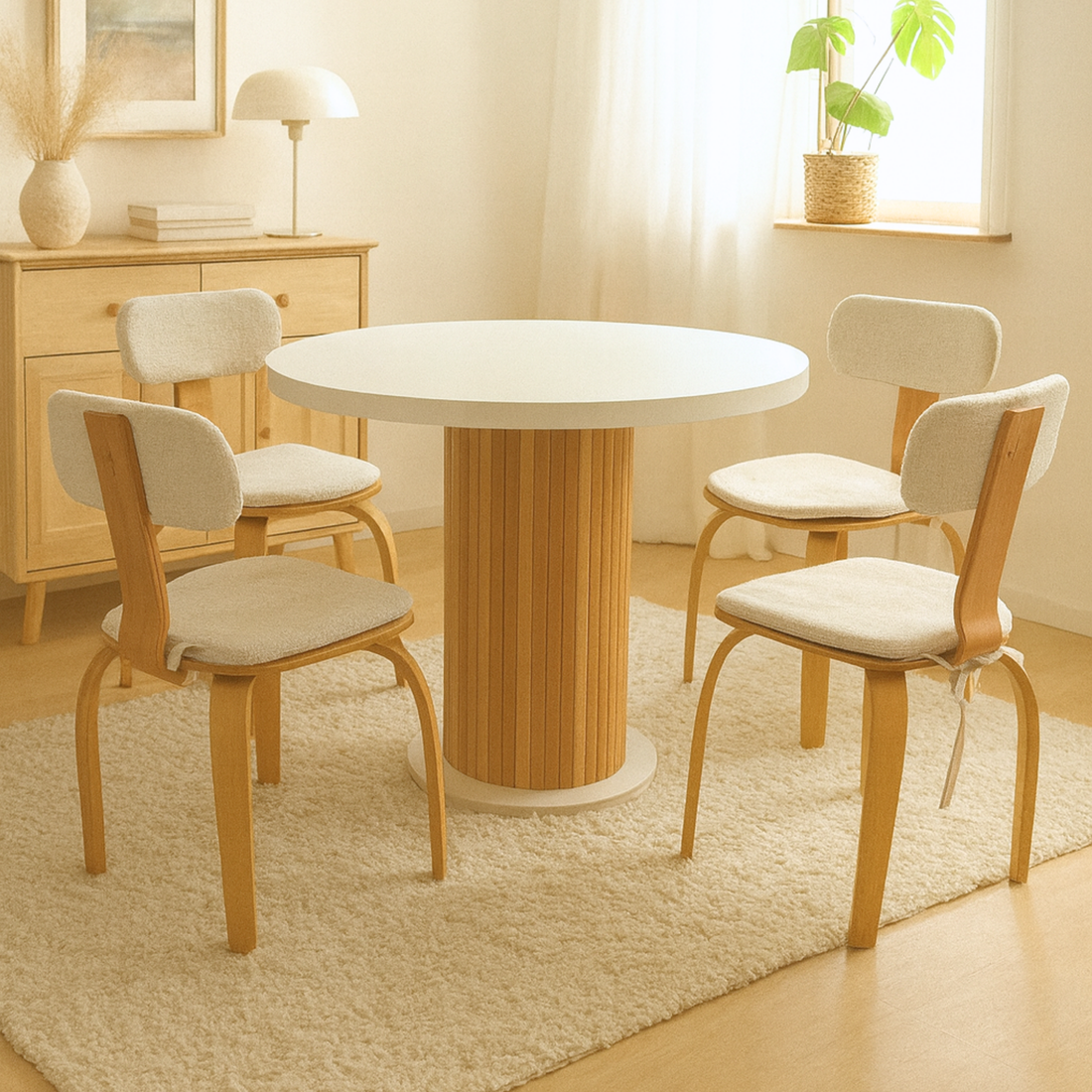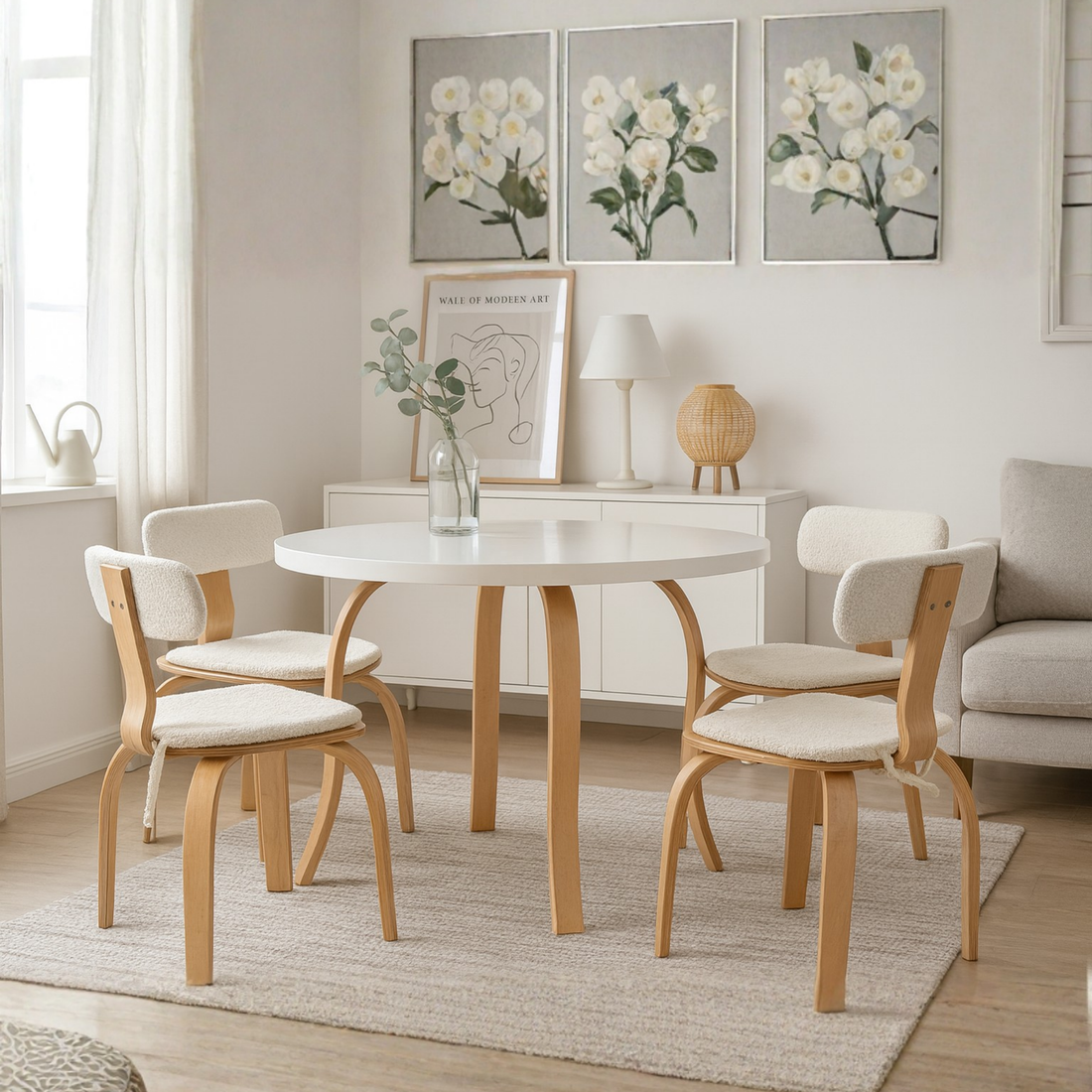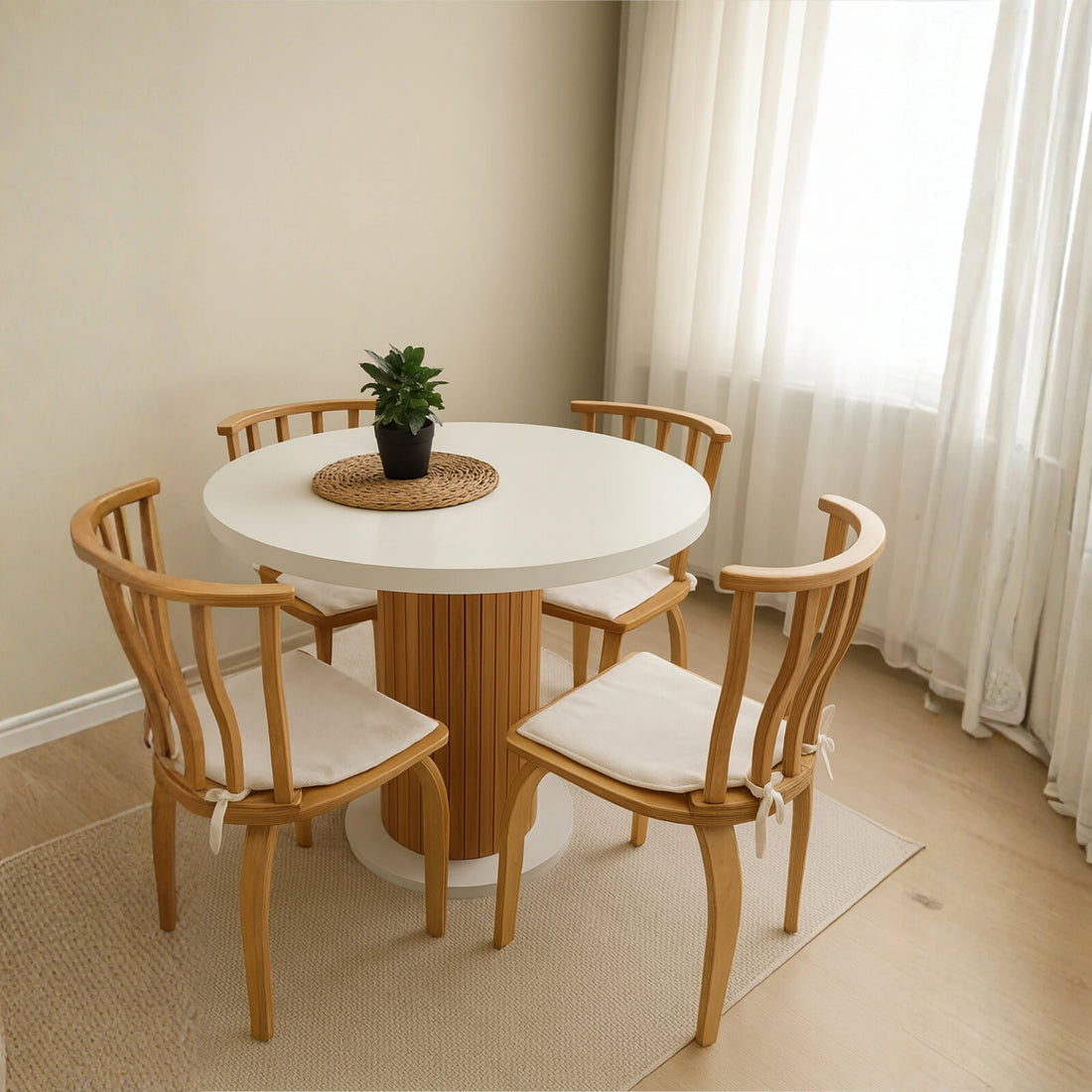 4 Kişilik İskandinav Beyaz Renkli Sandalye Setli Yuvarlak Yemek Masası, Bohem Stil (4 Sandalye Dahil)