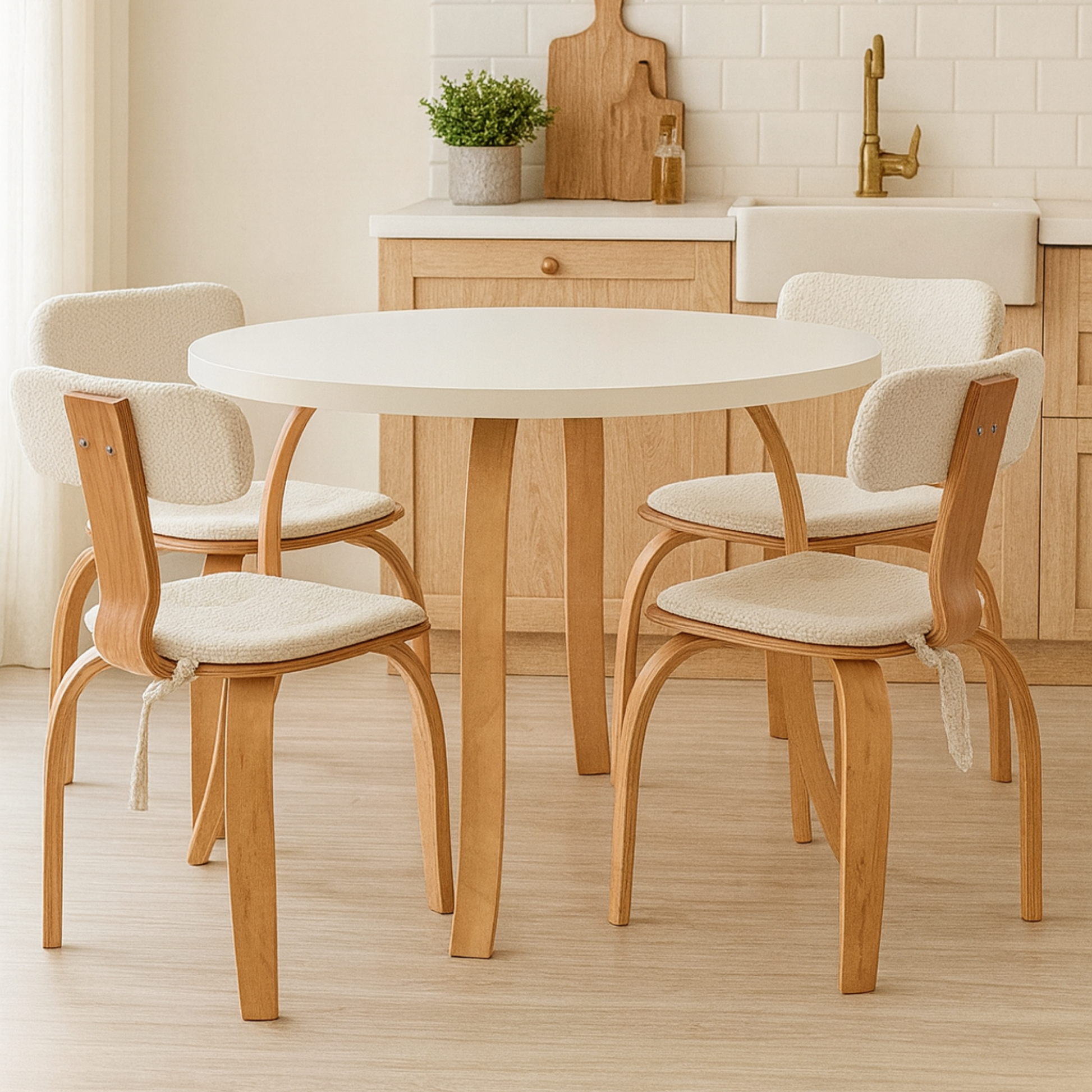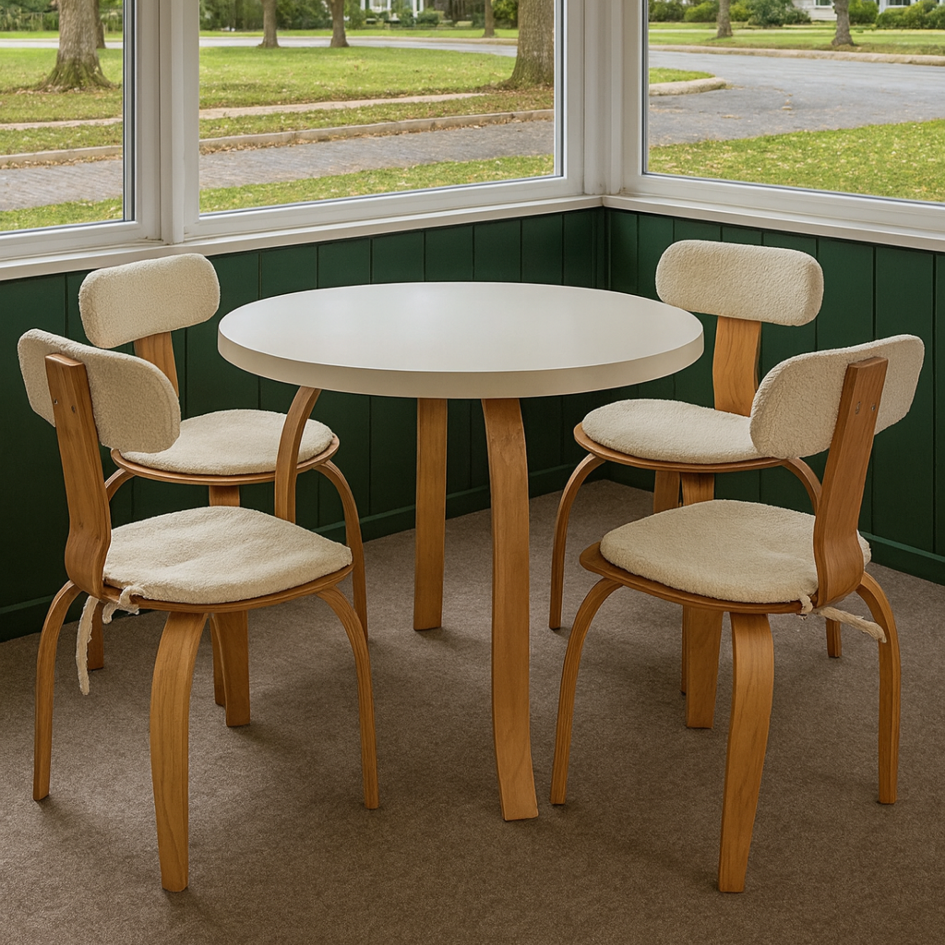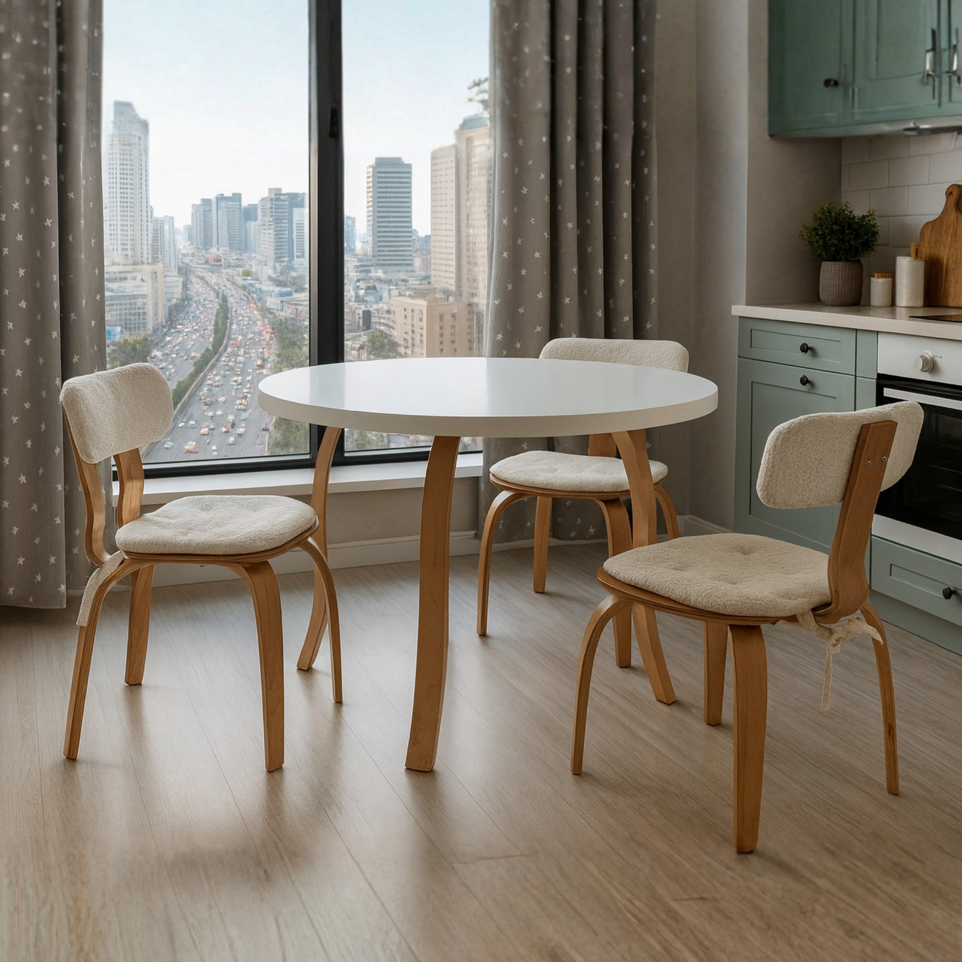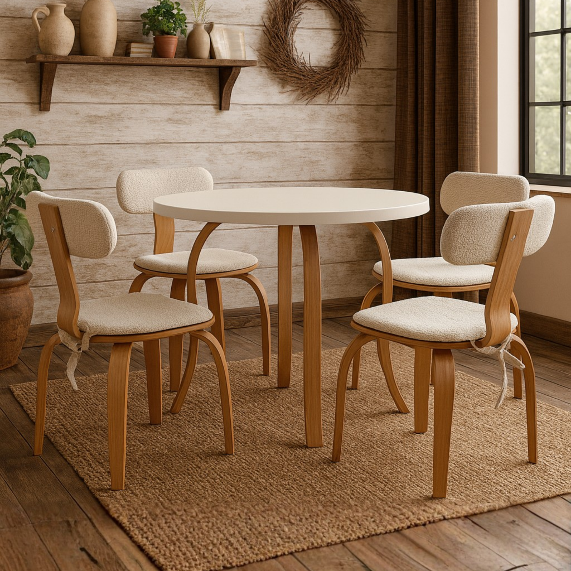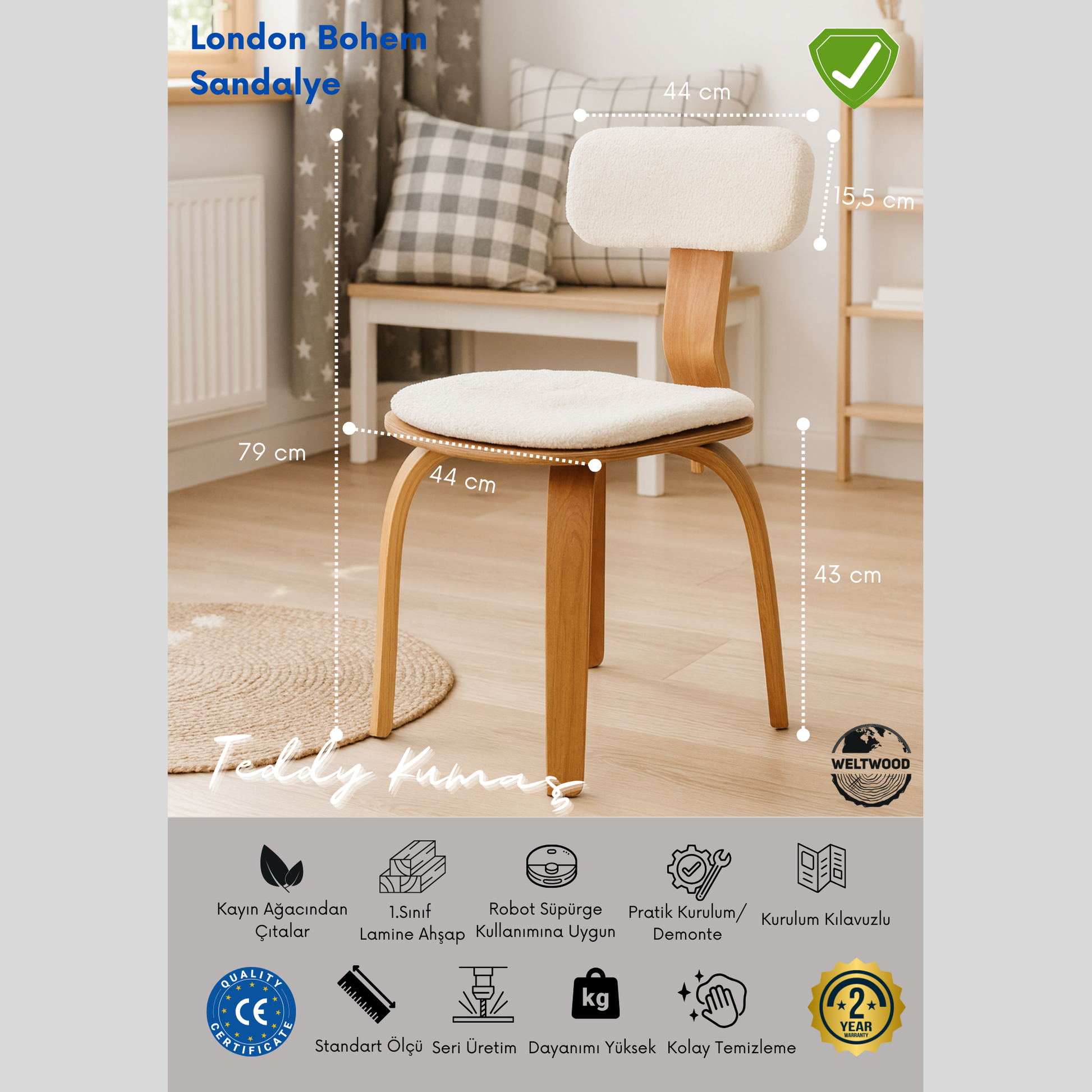 Modern İskandinav tarzının zarif çizgilerini, İngiliz(London) tasarımının bohem sıcaklığıyla buluşturan Weltwood Yemek Takımı; hem şıklığı hem de fonksiyonelliği bir arada sunar. Bu özel set, 4 kişilik yuvarlak kelebek masa ve 4 adet London Bohem sandalye ile yaşam alanlarınıza estetik, konfor ve dayanıklılığı aynı anda kazandırır.