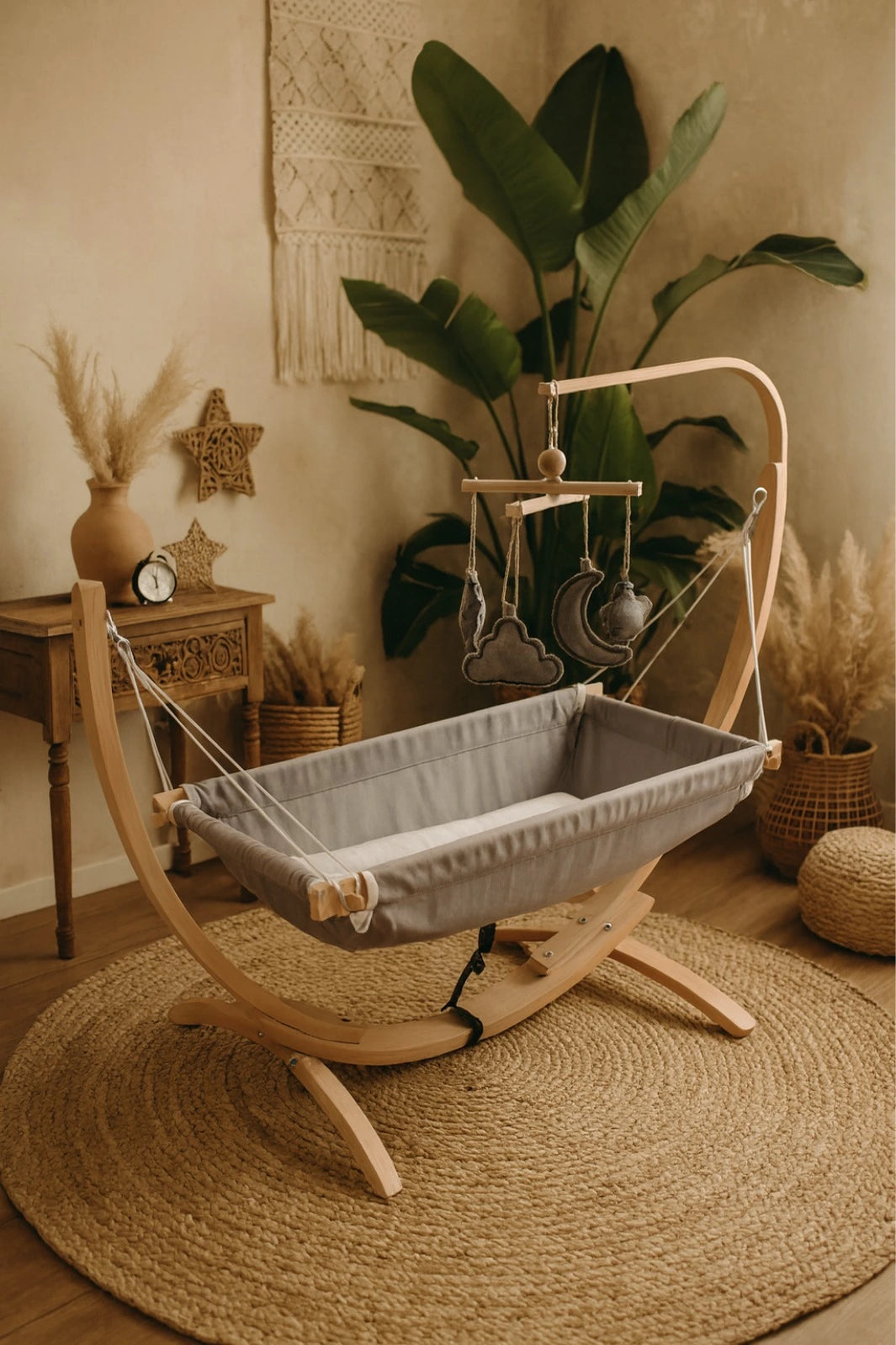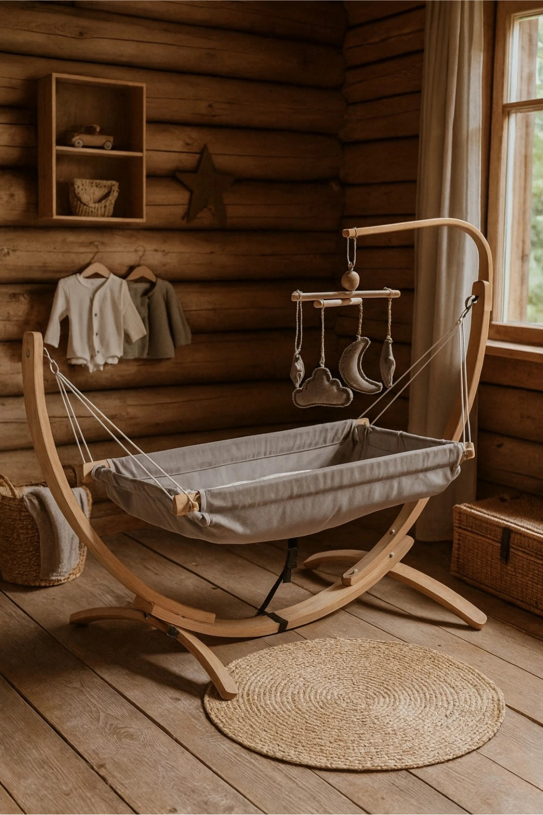 Ahşap Bebek Hamağı Sallanabilir-Sabitlenebilir Oyuncaklı