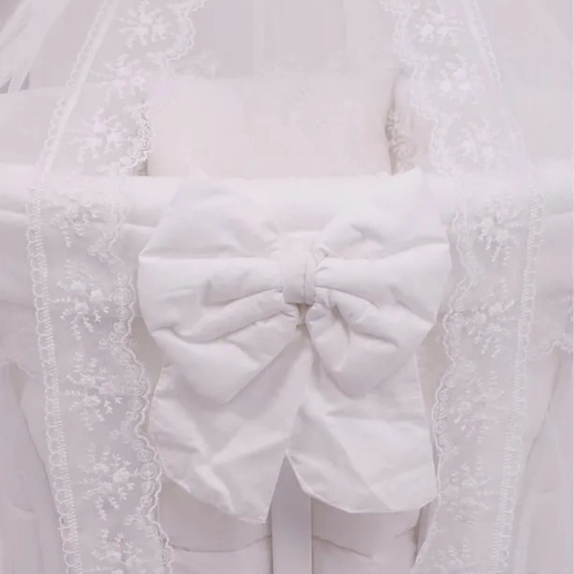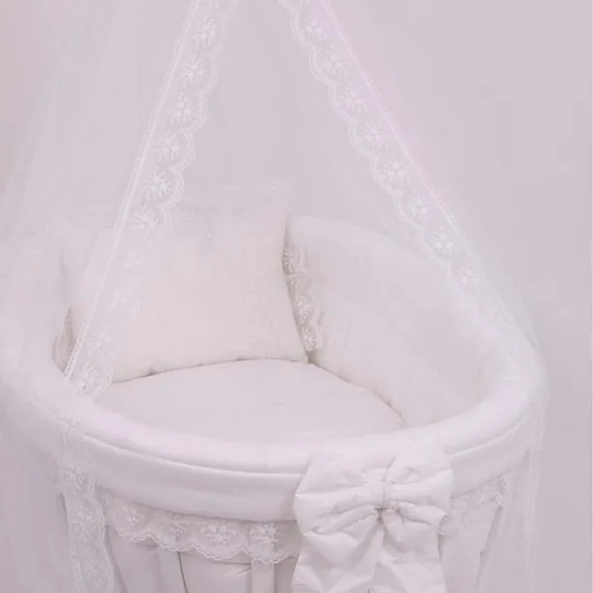 Ahşap Sepet Beşik 2.60 cm Beyaz Fransız Dantelli Uyku Seti, Tam Takım, Beşik Dahil Değildir