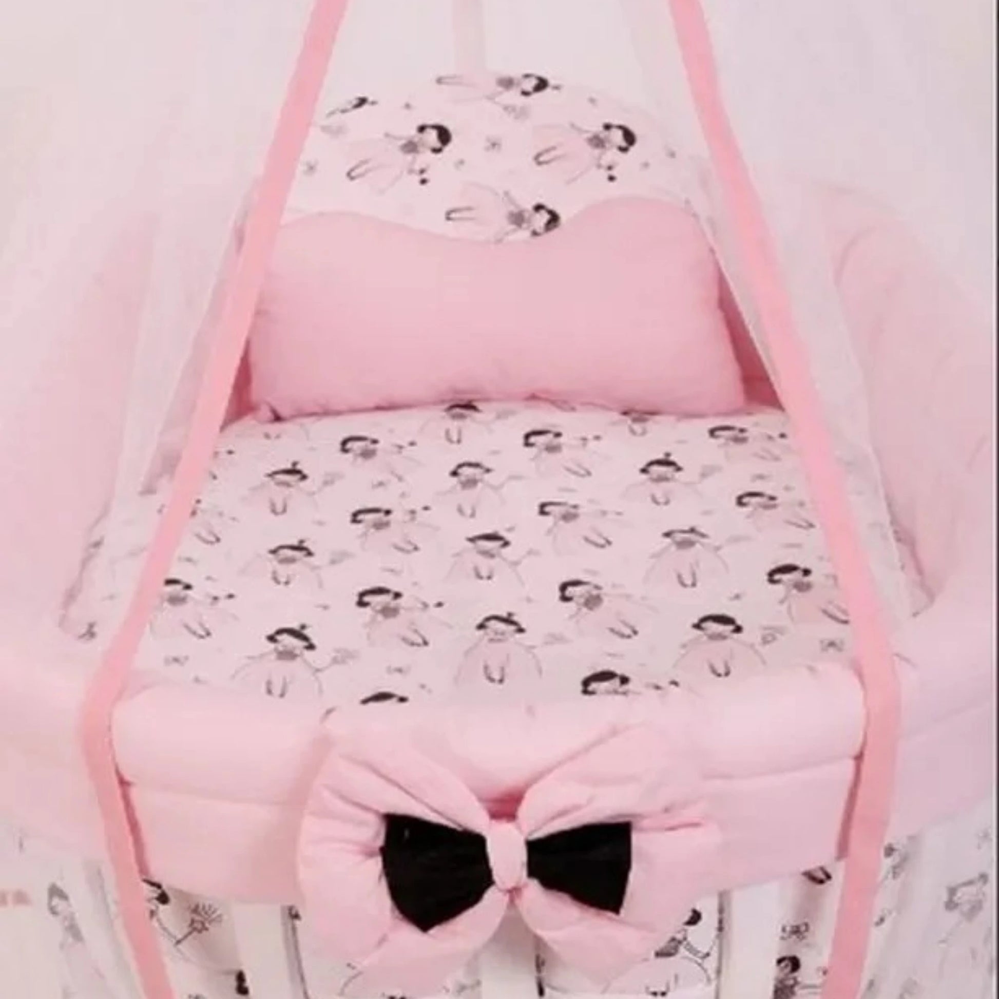 Ahşap Sepet Beşik 2.60 cm Uyku Seti, Prensesli, Tam Takım Kız Bebek İçin, Beşik Dahil Değildir