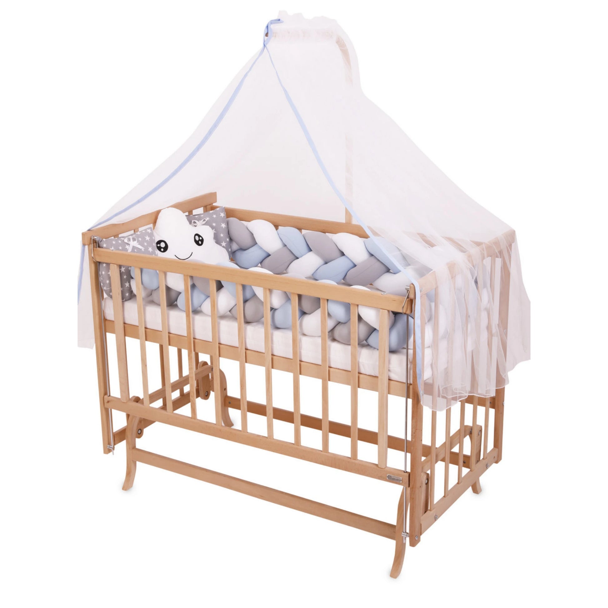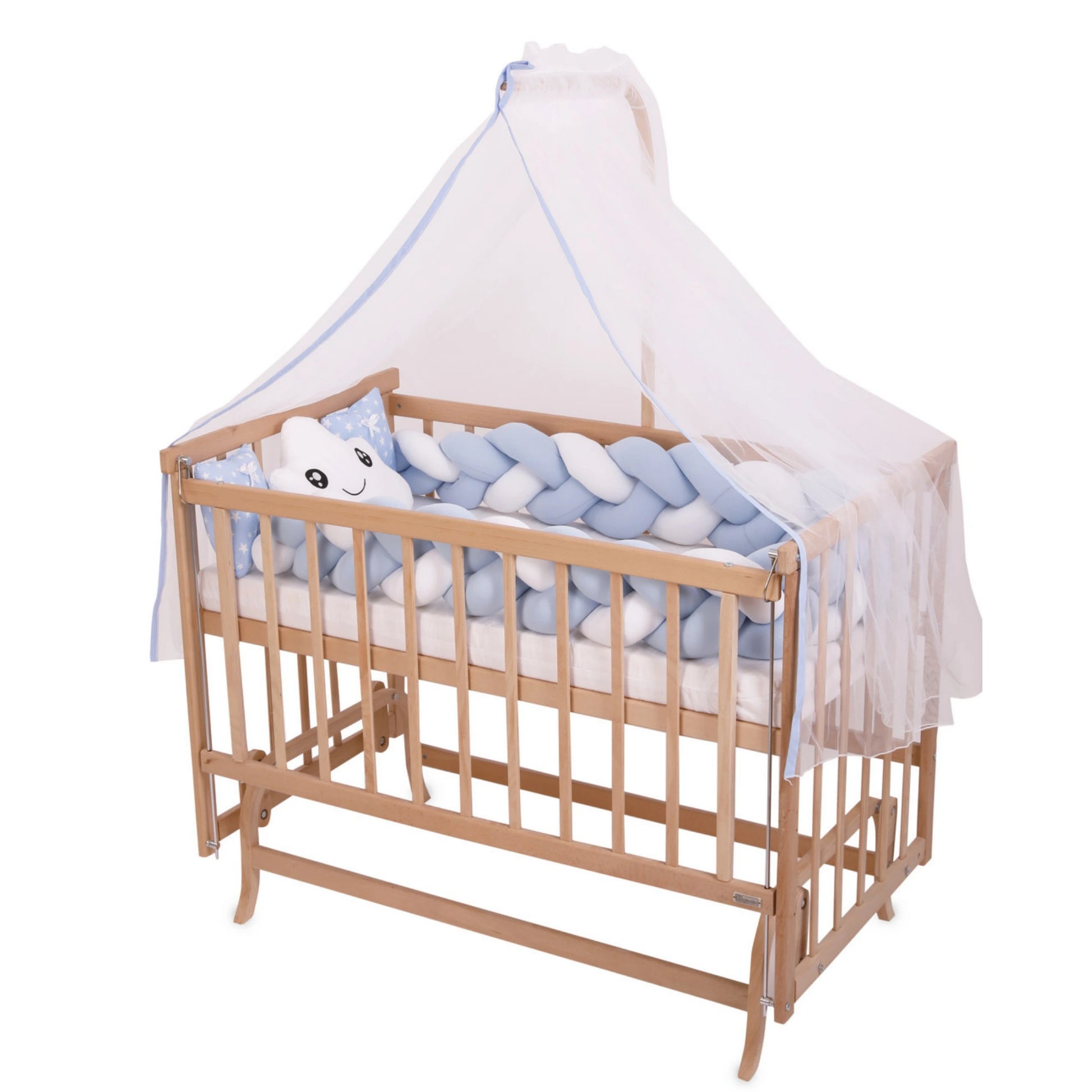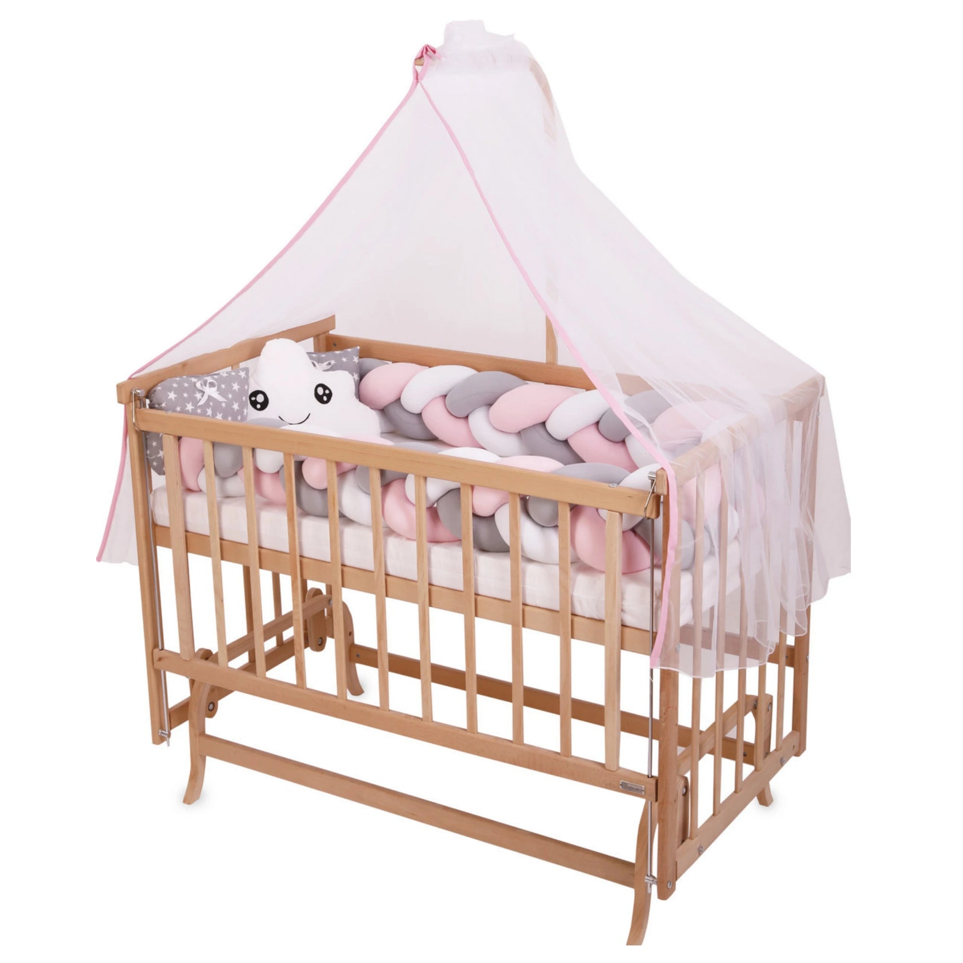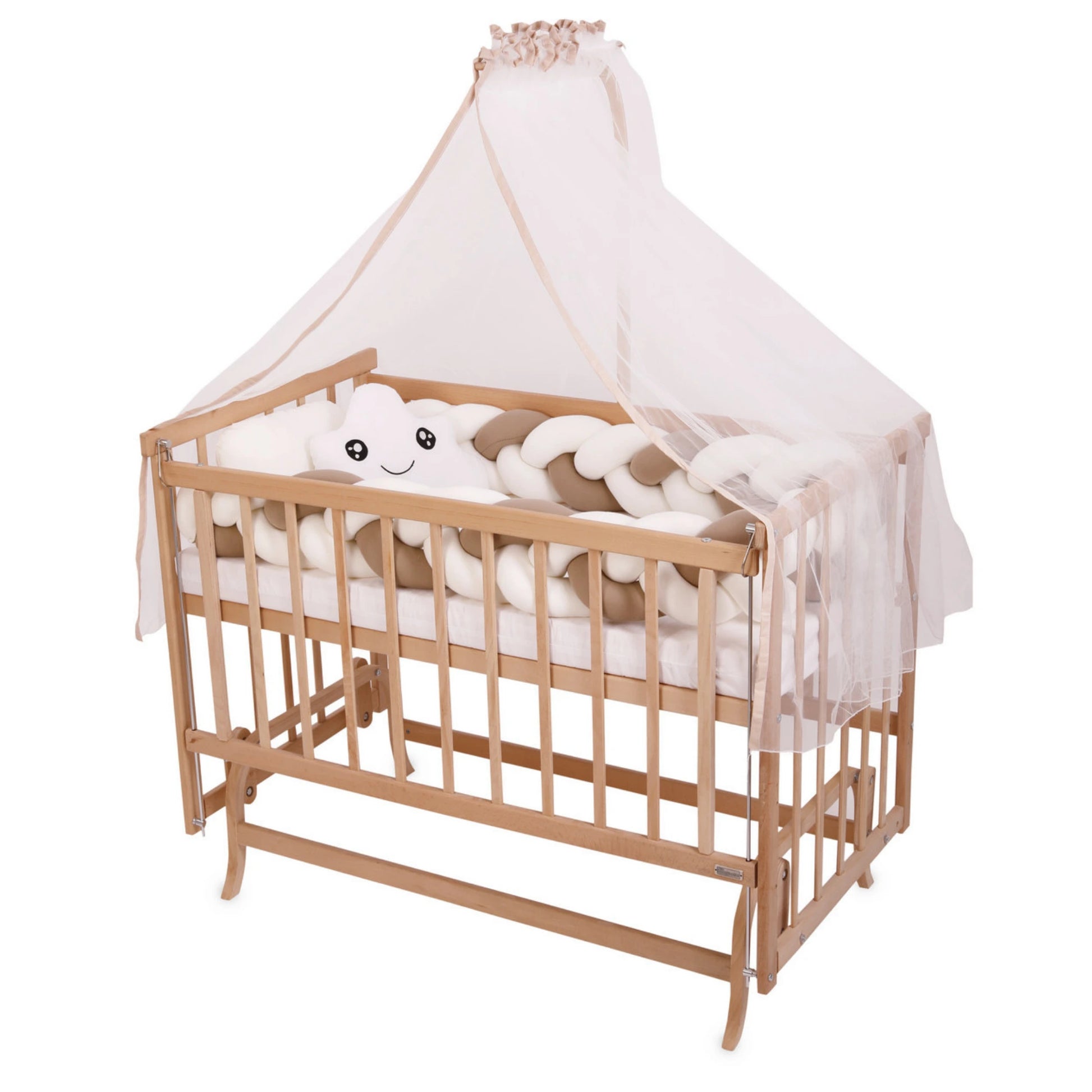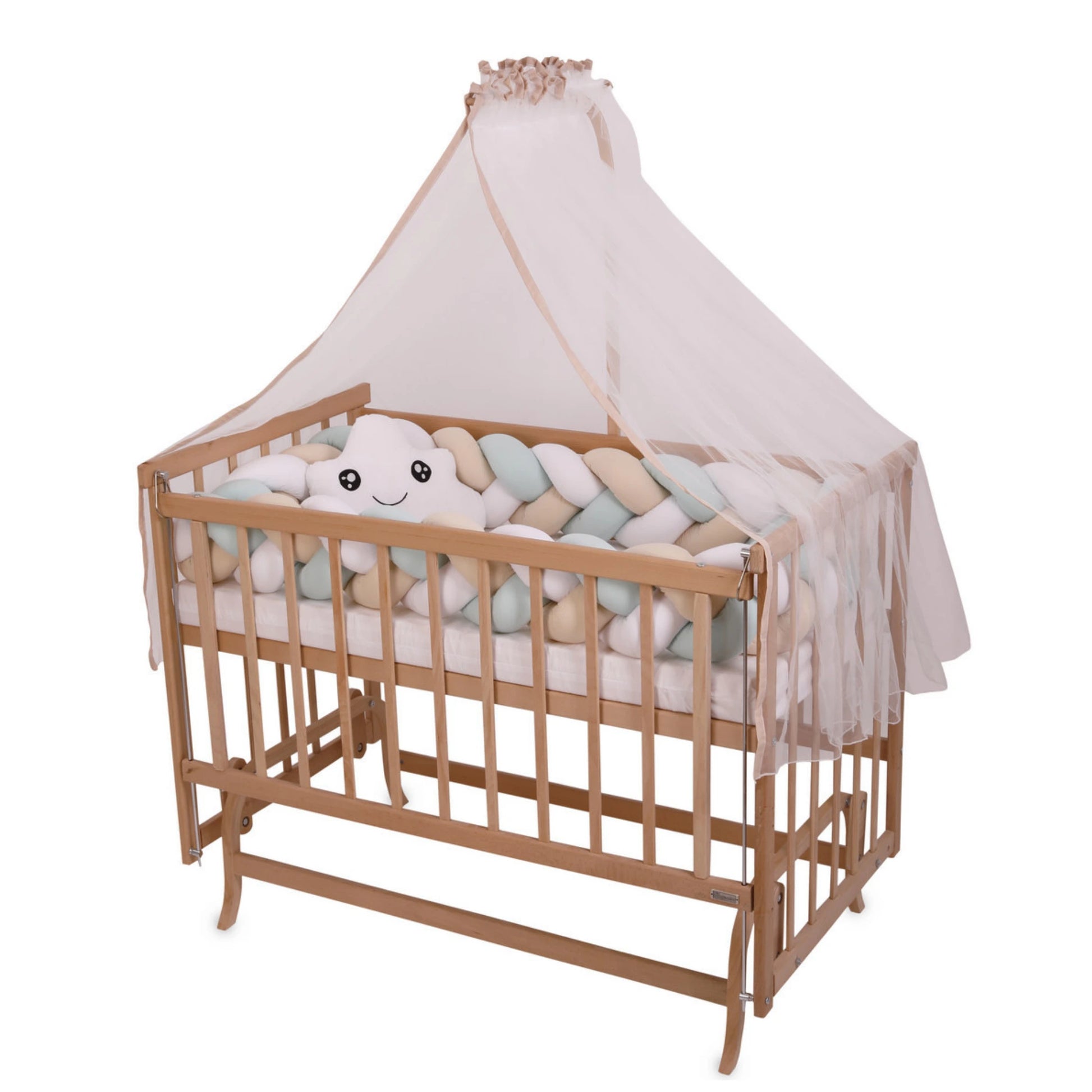 Elyeza Doğal Ahşap 0-5 Yaş Renkli Örgü Korumasıyla Birlikte Anne Yanı Asansörlü Beşik
