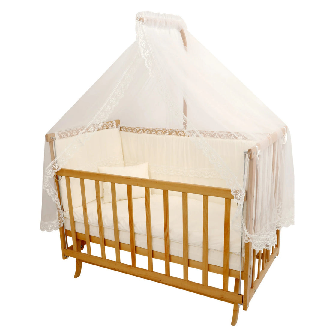 Mabela Ahşap Anne Yanı, Krem Örgü Koruma, Bebek Beşiği, Kademeli, Sallanabilir, 72x124