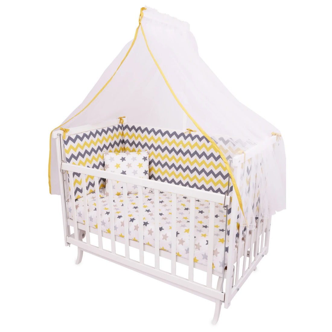 Mabela Ahşap Anne Yanı, Kahve Yıldız Uyku Setli, Bebek Beşiği, Kademeli, Sallanabilir, 72x124