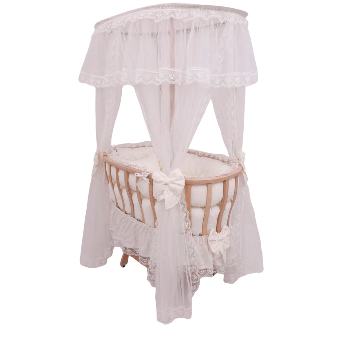 Çatılı Sepetli Beşik, %100 Pamuklu Krem Fransız Uyku Setiyle
