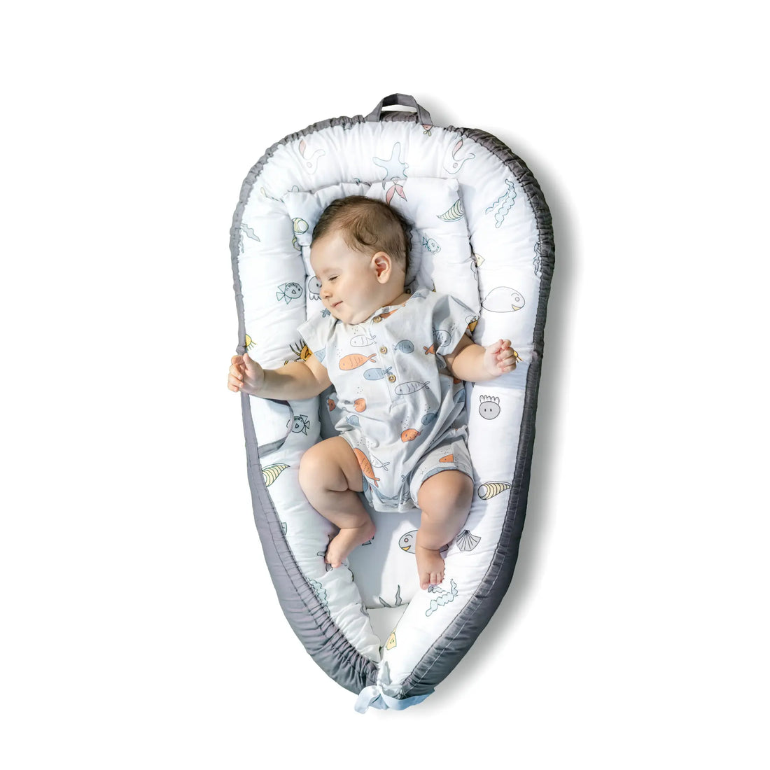 Akvaryum Desenli Anakucağı, Nefes Alabilir Yapıda %100 Pamuk Yenidoğan Bebek Yatağı, Oyuncaklı