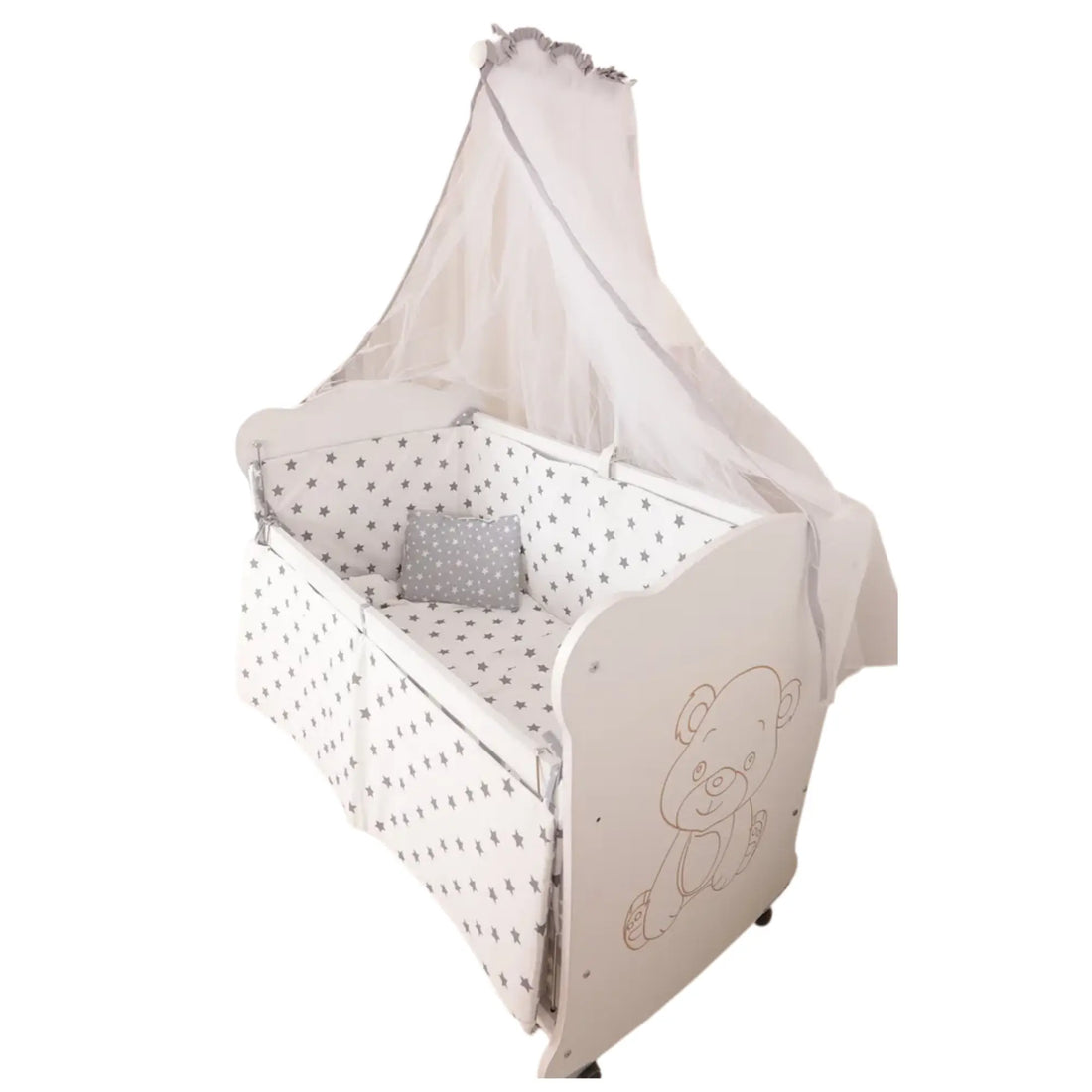 Mabela Ahşap Anne Yanı, Kahve Yıldız Uyku Setli, Bebek Beşiği, Kademeli, Sallanabilir, 72x124