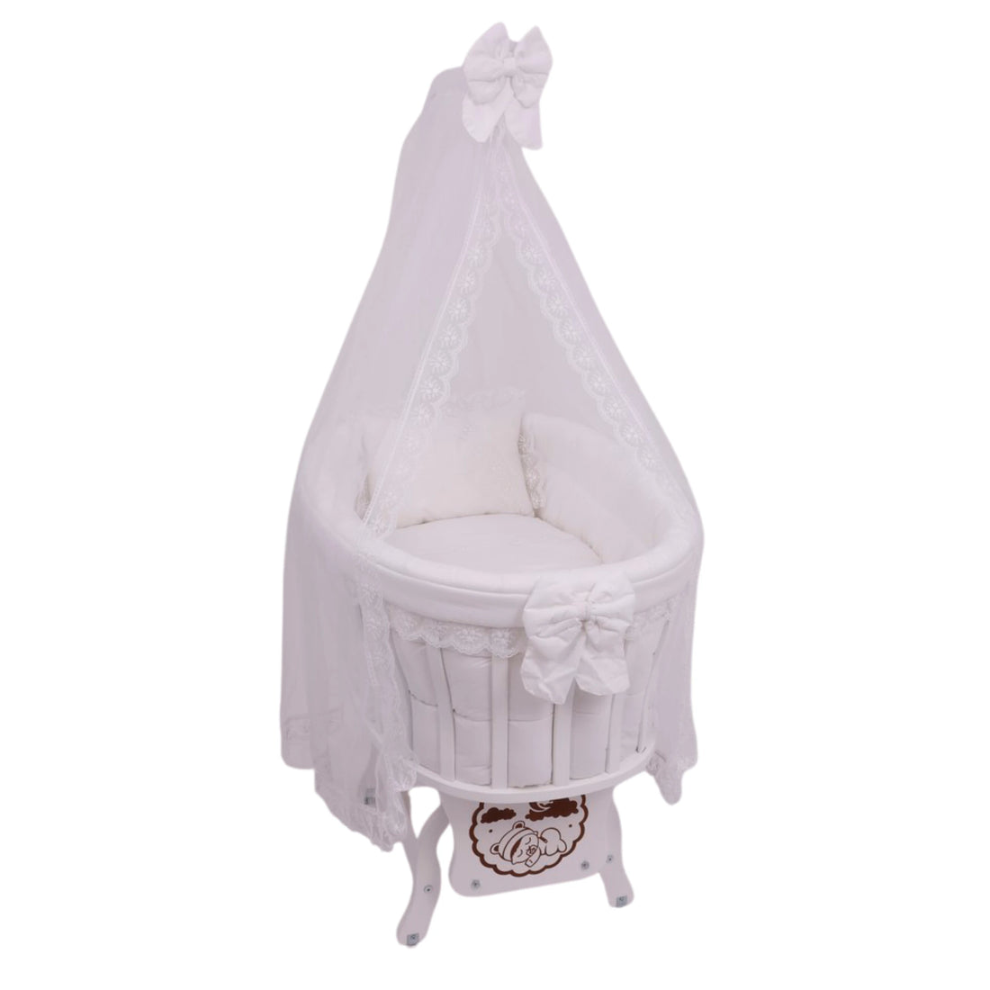 Ahşap Sepet Beşik 2.60 cm Beyaz Fransız Dantelli Uyku Seti, Tam Takım, Beşik Dahil Değildir