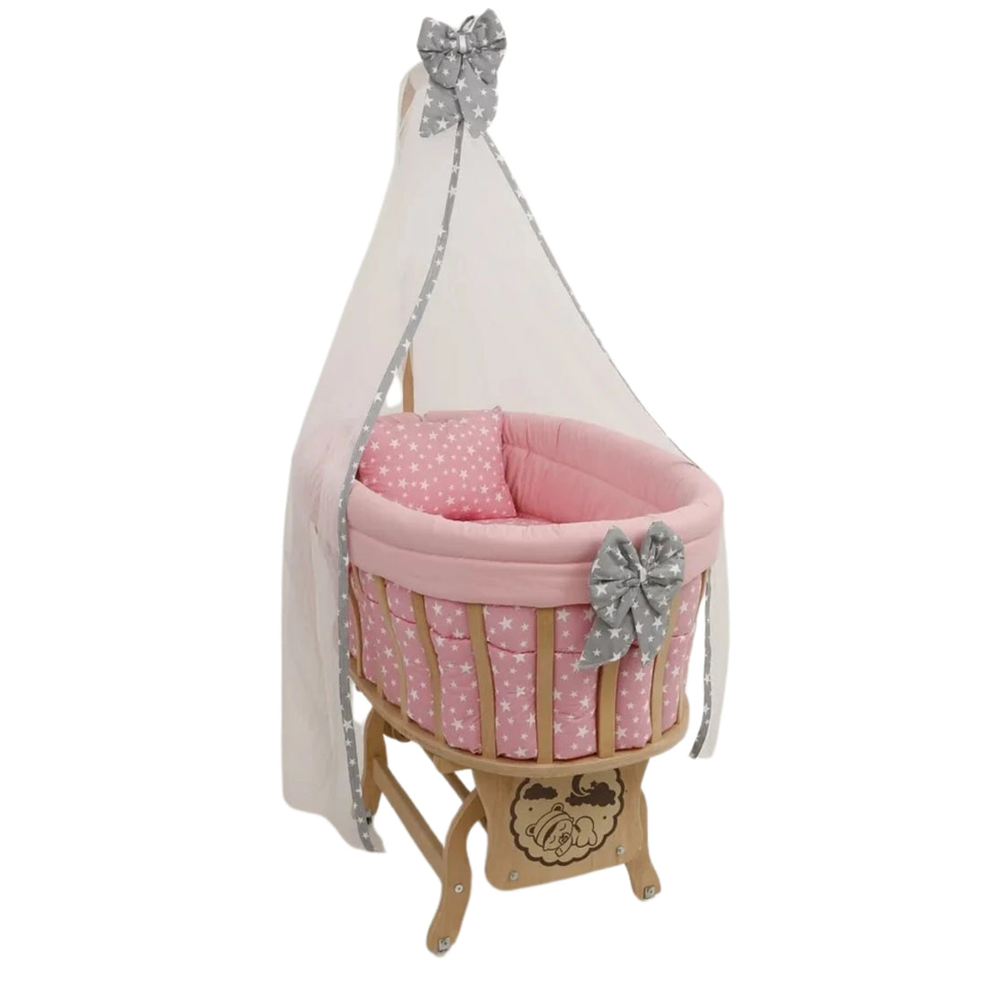 Ahşap Sepet Beşik 2.60 cm Uyku Seti, Prensesli, Tam Takım Kız Bebek İçin, Beşik Dahil Değildir